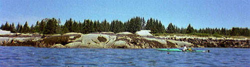| The Paddle Trip: Trip Summary: An open ocean trip combined with the beauty (and security) of a cluster of beautiful wild islands and ledges. Many, many options. You'll never do it the same way twice. Distance: 8+ nautical miles (round trip). Paddling time: 3 - 4 hours, or more depending on your route. The Launch: Carry your boat down the steep dirt driveway that leads out onto the beach. The steep pebbly beach could make for an exciting launch when the surf is up. The Route: The tiny islands and ledges to your right and to your left are going to call out to you, so prescribing a set course is an exercise in futility. Instead, I'll only suggest a general route. From Ash Point, skirt around the eastern shore of Ash Island, and then turn south for the 1 nautical mile crossing to Otter Island. From Otter Island, begin a wide clockwise circuit through this sea of islands and ledges, going as far as Graffam Island if you have the time. Then swing north along the western shore of Dix Island and Ash Island before returning to Ash Point. Watch Out For: The current in the Muscle Ridge Channel between Ash Island and Otter Island can be fairly strong. Seas are likely to be choppy here. (Water depth to 80 feet or more). Tips: An early morning start is most likely to get you a parking spot and calm seas for your trip out. If you circulate through the islands in a clockwise direction, you may pick up a sea breeze to speed your return trip. If there is a stiff wind from the south or west, you may want to avoid the outer exposed shores of Andrews, Hewitt, Pleasant, and Graffam Islands. Bring a chart and binoculars if you have them. Ash Point can be difficult to spot on your return trip, so look for landmarks on your way out and be prepared to use back bearings. Natural Features: Colonies of harbor seals lounge on the many islands and ledges. (Please avoid disturbing them, especially in the spring when they are raising their pups -- it "costs" seals a lot in terms of energy every time they go back into that cold Maine water, and once disturbed, they may stay in for a long time). Huge populations of ducks and other shorebirds can be seen on these islands. An archipelago of beautiful granite islands, some exposed to open ocean, others protected, with tiny pocket beaches. Other Landmarks: Two Bush Light, with its 5 second interval, is to the south during much of the trip. On a clear day, the bridges to Spruce Head Island and Birch Island can to the west -- from Dix Island and Hewitt Island, respectively. Stretch Your Legs: Birch Island, situated between Dix and High, is open to Maine Island Trail Association members for day use. Please contact MITA for more information. One Paddler's Story: Ray Wirth paddled this trip in May of '99.